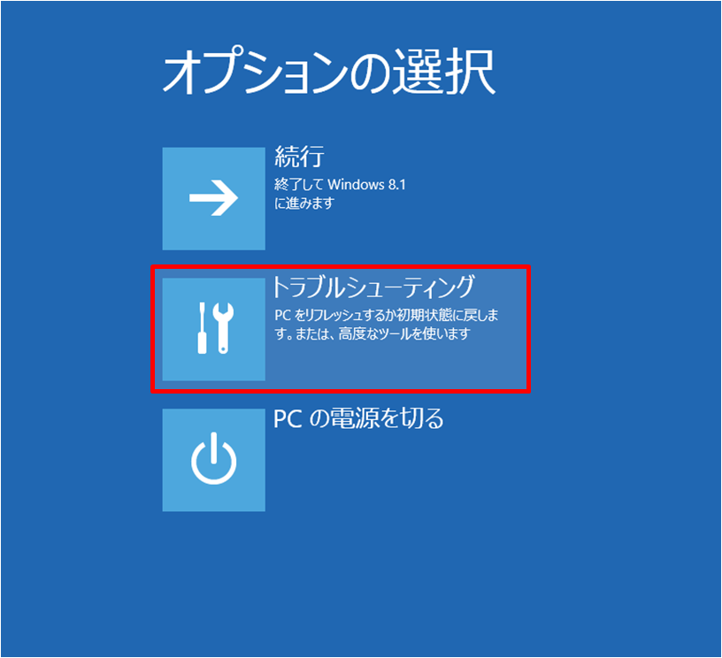 3.コンピューターの再起動が開始され、[オプションの選択]画面が表示される