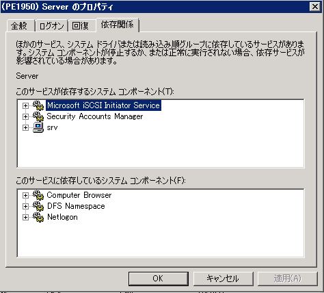 SamSS , Srv 以外のサービスがすでに依存関係にある場合はさらに / で追記しておかなければまりません。Server サービスのプロパティで確認する必要があります。