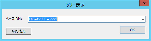 4.[表示]-[ツリー] にて ベースDN を グループポリシーオブジェクトが格納されている箇所にする。リストから選ぶ。